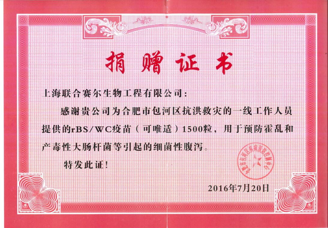 The indication of prevention to Diarrhea caused by ETEC for recombinant B subunit/ cholera vaccine (enteric capsule) was approved